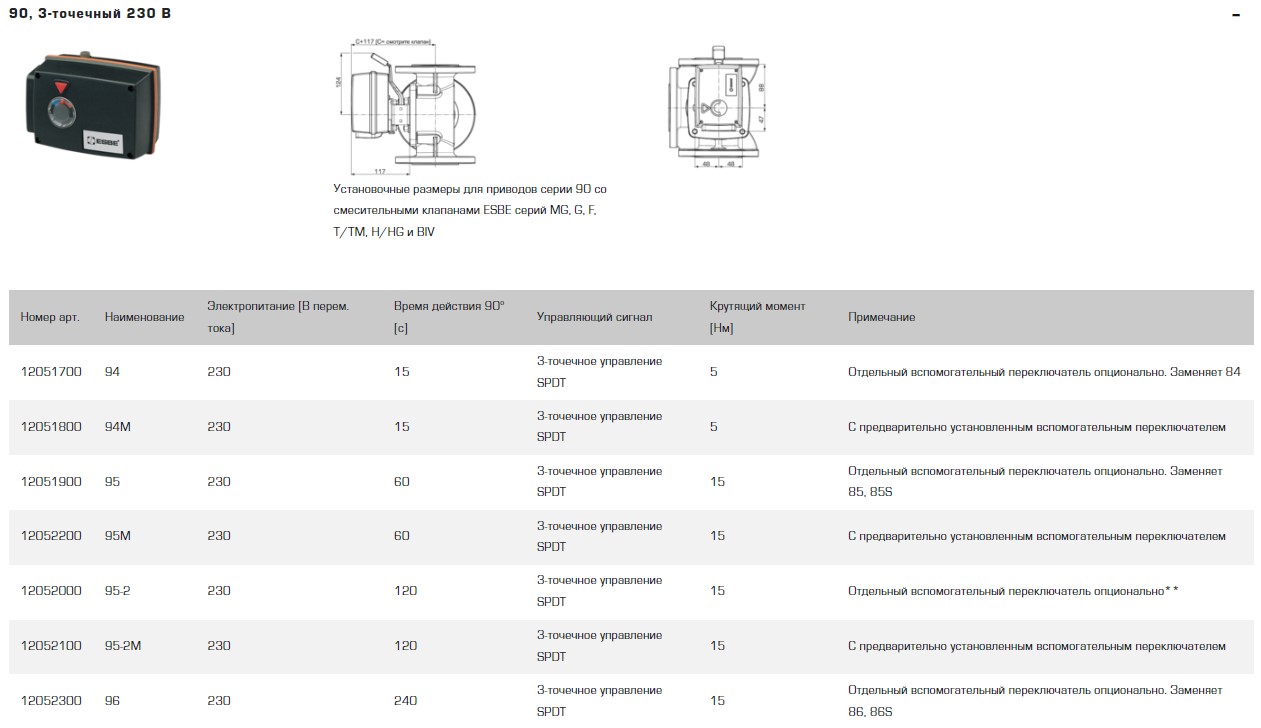 96 Привод 3-точечный 240s,15Nm, 230V ESBE
