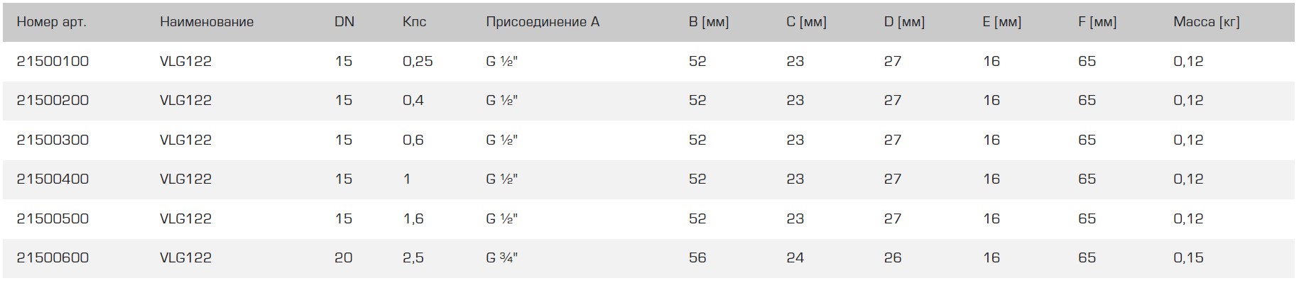 21500300 VLG122 PN16 15-0.6 G 1/2 ESBE