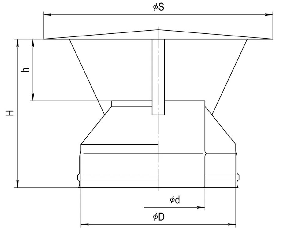 Является завершающим элементом дымового канала, используется для предохранения двустенного дымохода от атмосферных осадков, а также закрывает слой теплоизоляции.