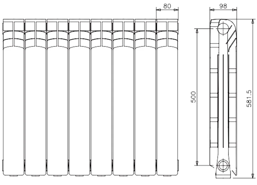 -Радиаторы состоят из литых алюминиевых секций, изготовленных из высококачественного алюминиевого сплава (AlSi9Cu EN AB-46100) по технологии литья под давлением в соответствии с нормативом UNI EN 1676. Радиаторы собраны на стальных ниппелях, имеющих специальное антикоррозионное покрытие внутренней поверхности.