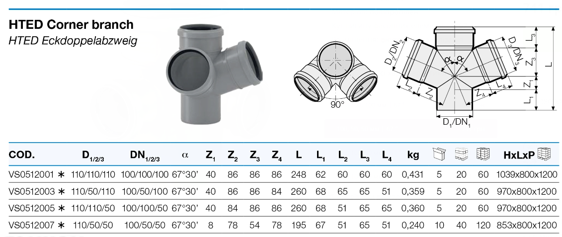 Крестовина двух плоскостная ух 110/50/50 угол 67° HTED (VS0512007)