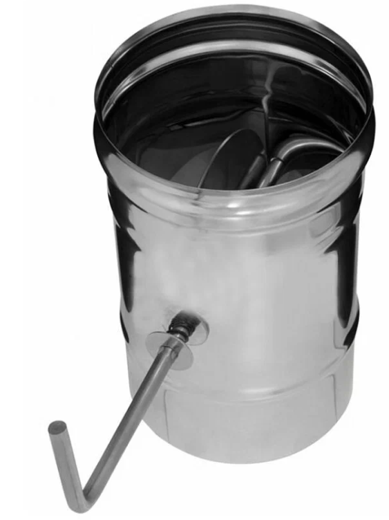 Шибер служит для перекрывания канала дымохода, поворотной заглушкой внутри трубы. Перекрытие дымового канала происходит не полностью, сделано это по нормам пожарной безопасности, чтобы не угореть от углекислого газа.