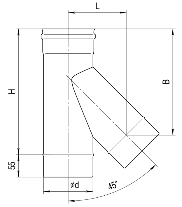 Предназначен для изменения направления дымового канала, используется в местах присоединения теплогенерирующего аппарата к основному каналу. Выполняет функцию очистного приспособления, облегчает обслуживание дымохода.