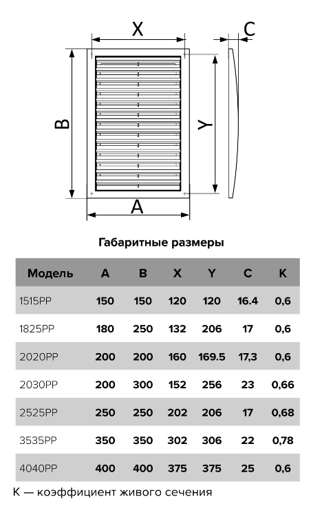 Монтаж с помощью саморезов Для приточно-вытяжной системы вентиляции Для декоративного оформления выходов приточных или вытяжных вентиляционных систем бытовых, общественных и промышленных зданий. Многоэлементная конструкция (кроме 4040РР — конструкция одноэлементная). Решетки имеют наклонные жалюзи.