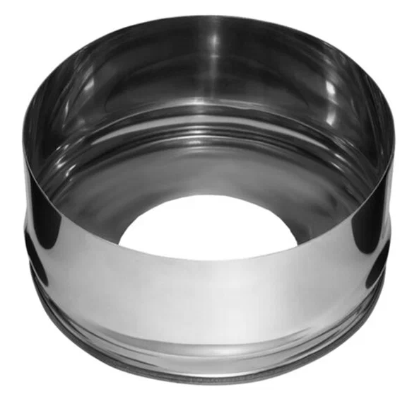 Заглушка с отверстием закрывает наружный кожух утепленного дымохода (сэндвич) при переходе на одностенный дымоход.